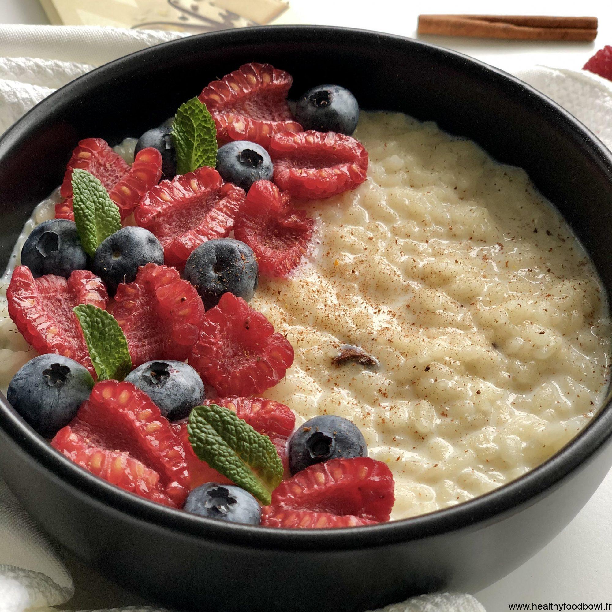 Riz au lait cuisiné au multi-cooker Infos pratiques 2 personnes Niveau : Facile Matériel Multi-cooker Ingrédients 100 g de riz dessert 50 cl de lait 4 carrés de chocolat blanc vanille 1 sachet de sucre vanillé  1/2 bâtonnet de cannelle Topping (framboises, myrtilles, quelques feuilles de menthe) La recette Passez le riz à l’eau. Mettez tous les ingrédients …