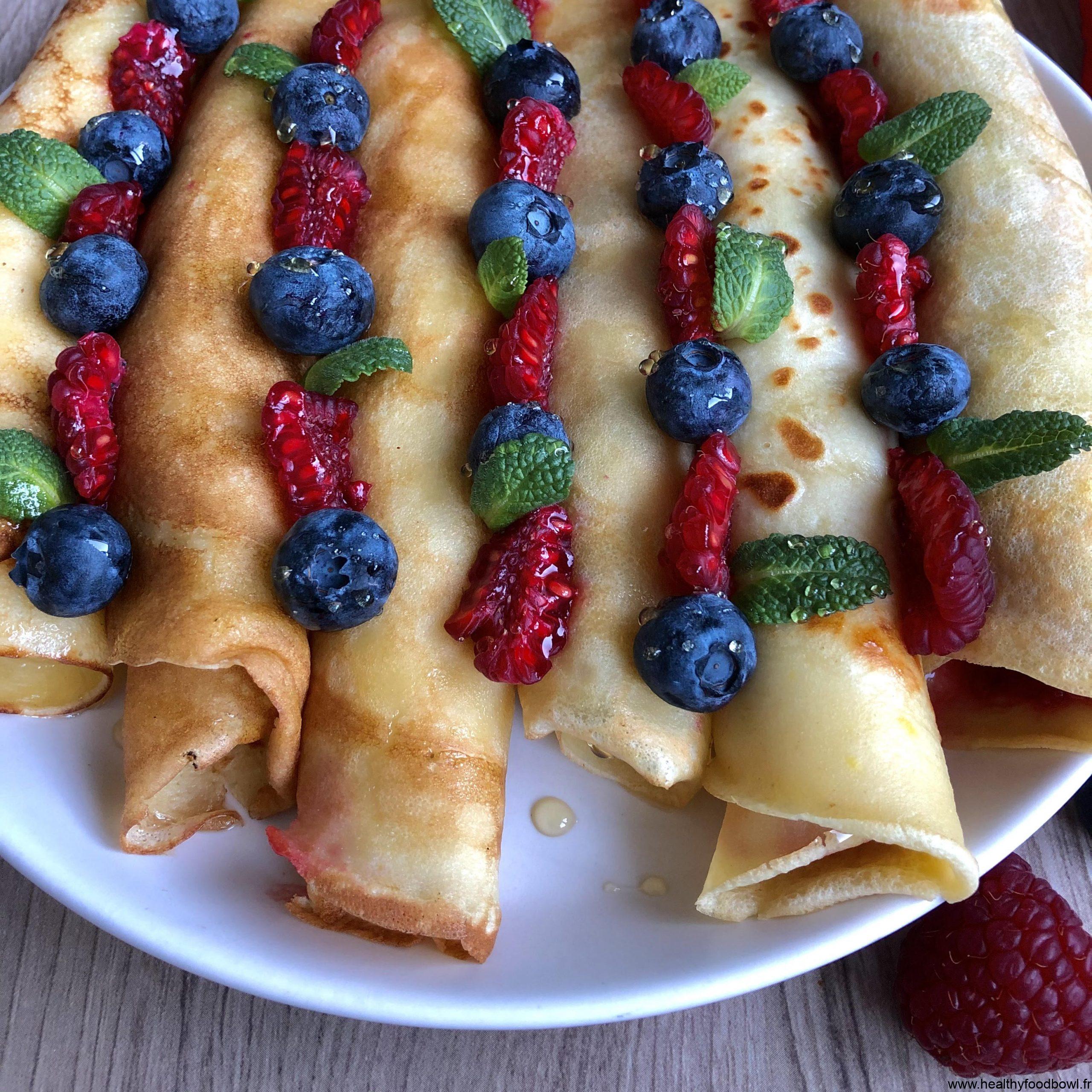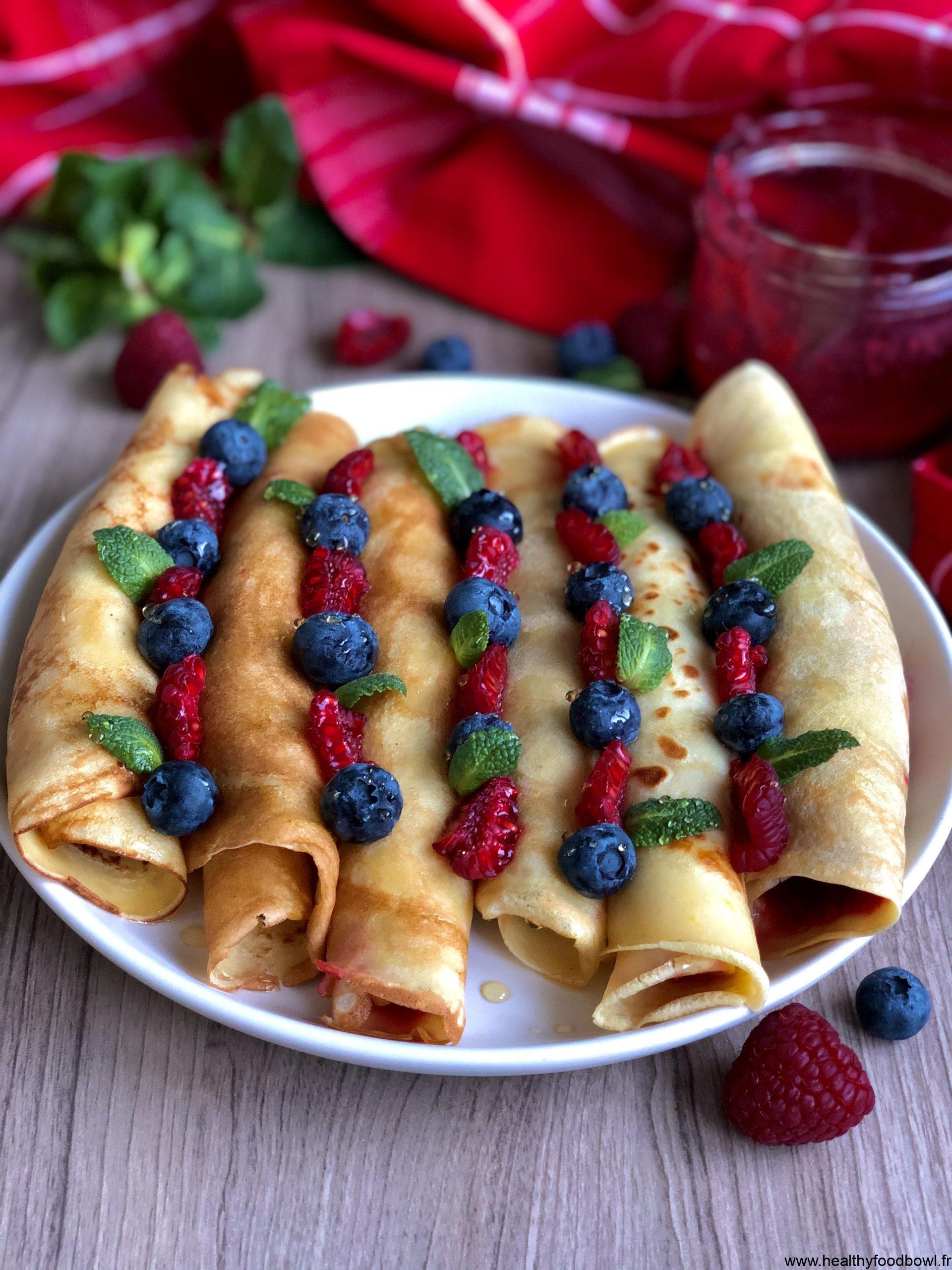 Montage : Une fois les crêpes prêtes, tartinez-les avec la compotée de framboise et enroulez. Disposez les crêpes tartinées dans un plat. Pour la déco, posez quelques myrtilles, framboises découpées et feuilles de menthe sur les crêpes. Faites couler les 5 ml de miel par-dessus et hop votre goûter à partager en famille ou entre ami(e)s est prêt !